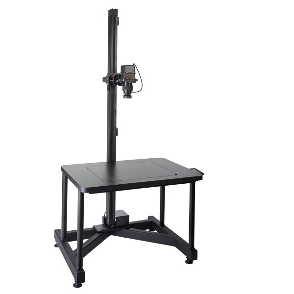 RPS-250 features a motorised vertical column with extended movement controls and geared moveable camera-arm. Its welded steel base has a removable base board with insert for the optional LED panel. Our copy stands facilitate absolute parallelity between camera and object. The optional memory function increases efficiency and repeatability when working at extensive archival projects. A vibration absorber inside the column helps to eliminate camera shake within a fraction of a second. Two adjustable end-stops (top and bottom) protect the camera and the objects during digitization.
