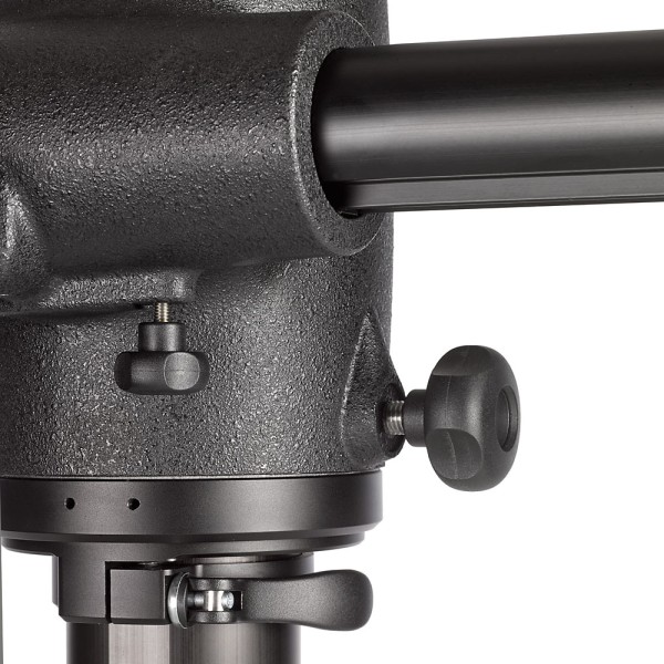 The cross arm is integrated in the sliding collar and has a generous total length of 100 cm, moved with a gear cranck for exact positioning.