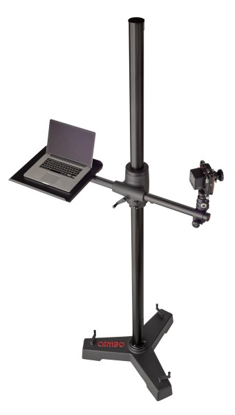 Column for MBX studio stand including geared lateral moving crossarm and movable 3/8 camera mount.