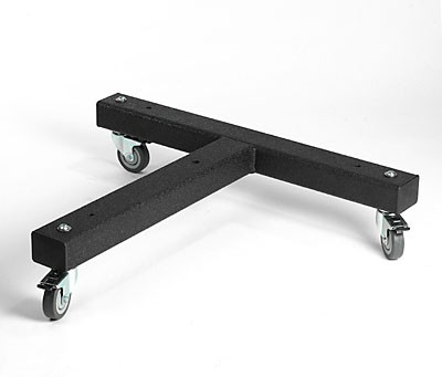 Welded T-Shape Base for the Mono-1 Studio Stand. Rolls on three swivelling castors. Each one individually lockable. An easy to move around yet stable platform.