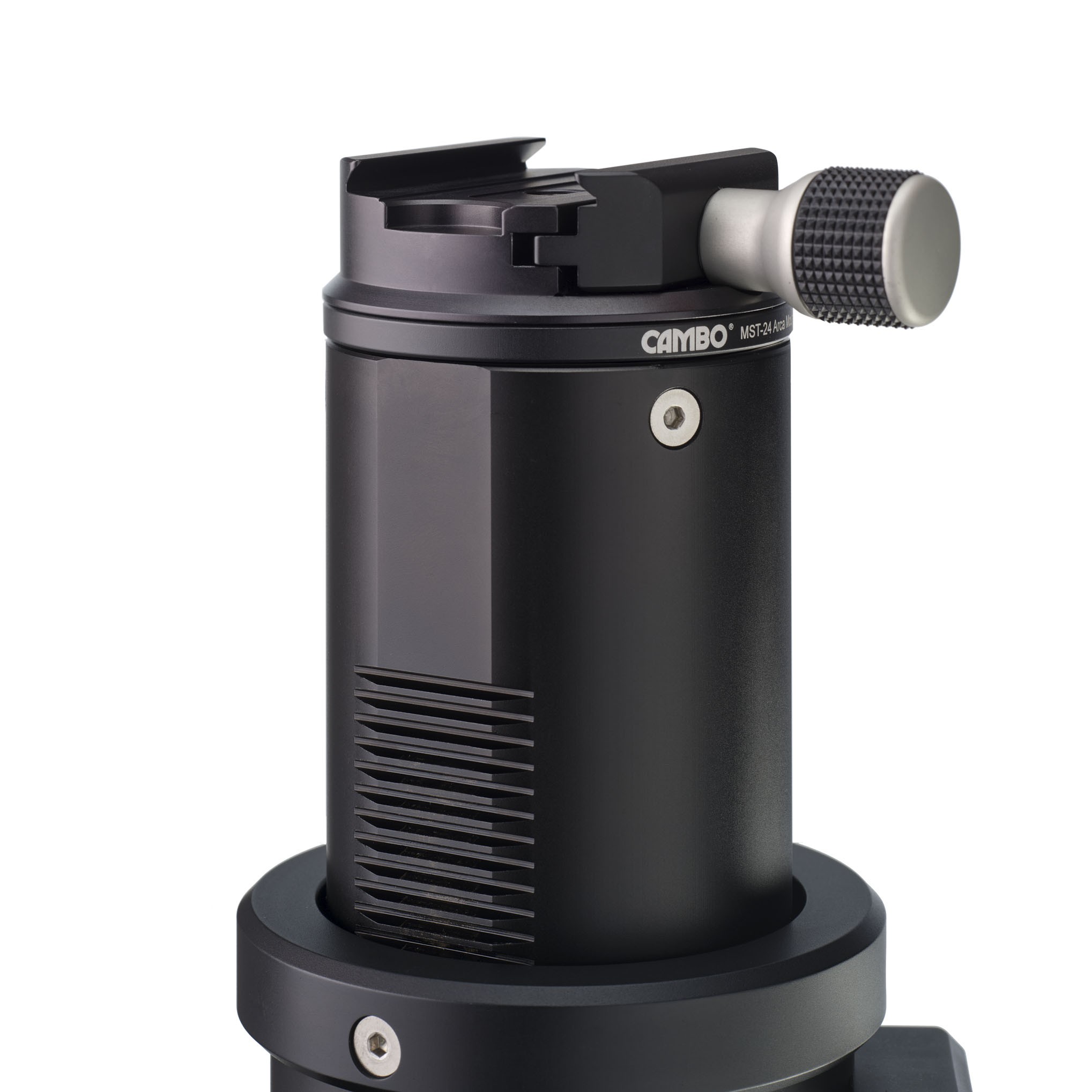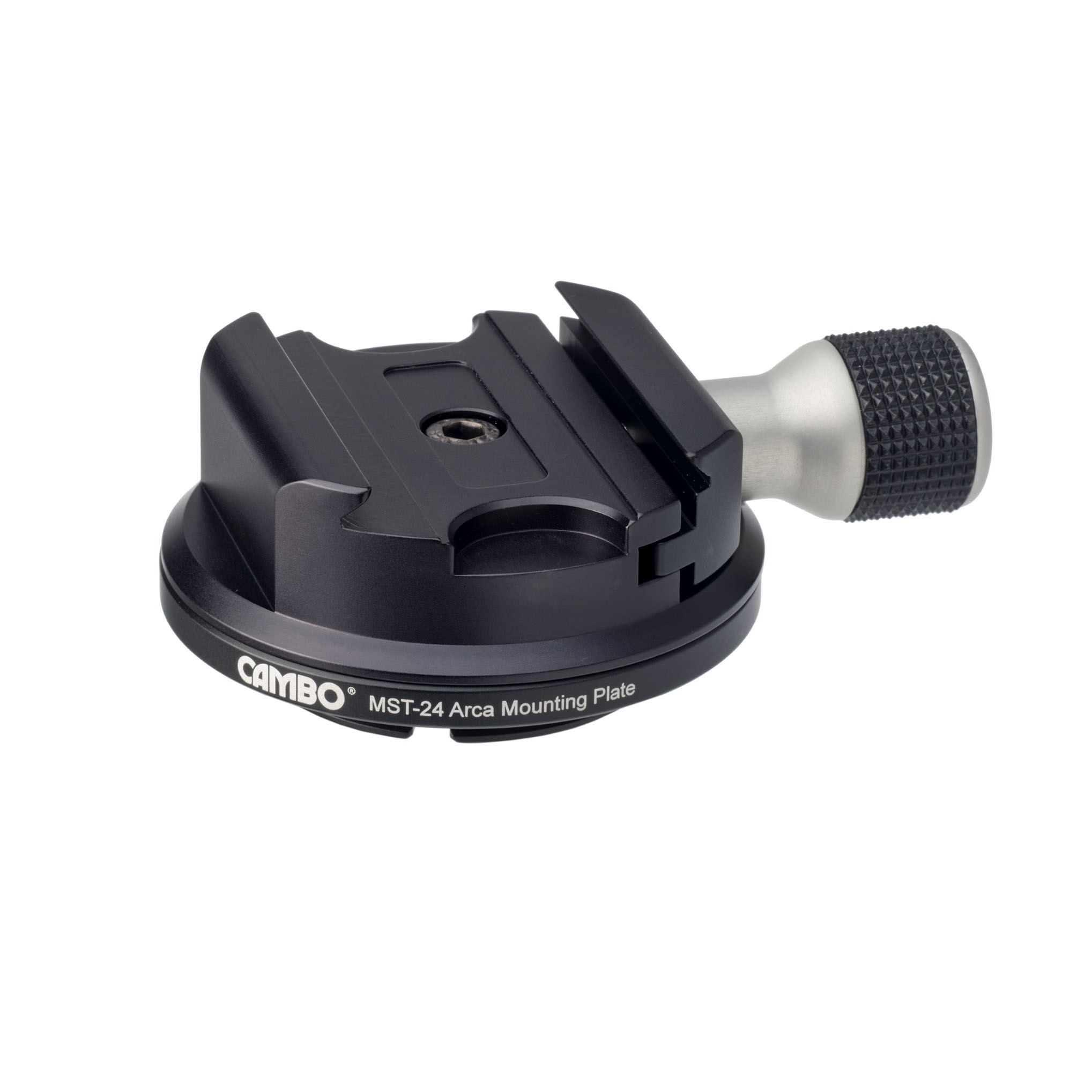 The MST-24 snaps into the MST stand's column and is securely locked with a V-Groove. It has an Arca style quick release adapter.