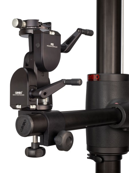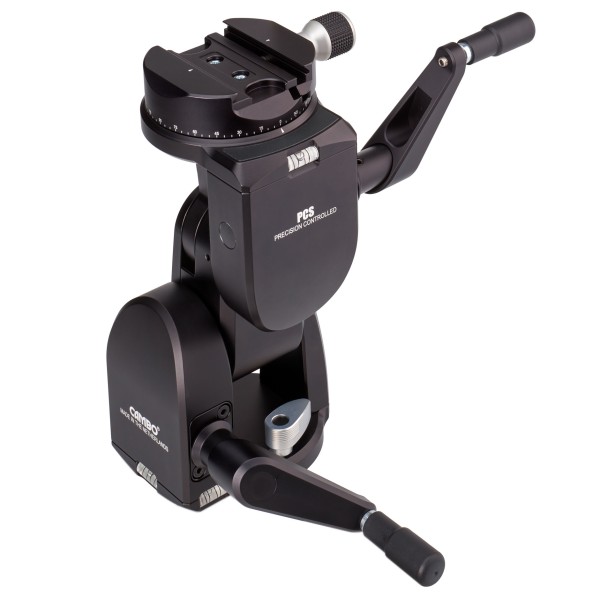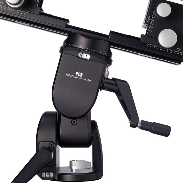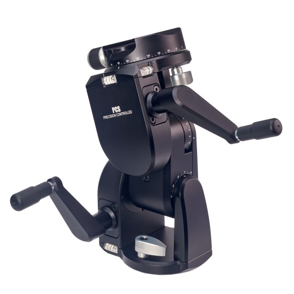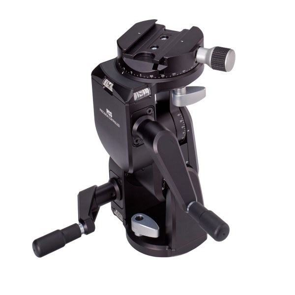 The ideal support for view cameras and other studio gear. This is a fully geared head operated by two cranks, for ease of use and stability. The geared movements are self-locking. The bottom and top plate both feature 360° rotation.