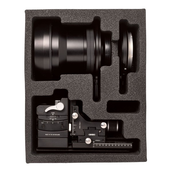 This set is optimised for the use with a mirrorless camera body such as Canon-R, Nikon-Z and Sony A-series, but also supports the use of Fuji's GFX series and the smaller APS-sensor bodies.