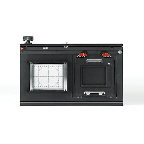 The ground glass is printed with several CCD sizes in portrait and landscape position. The ground glass also features a fresnellens.