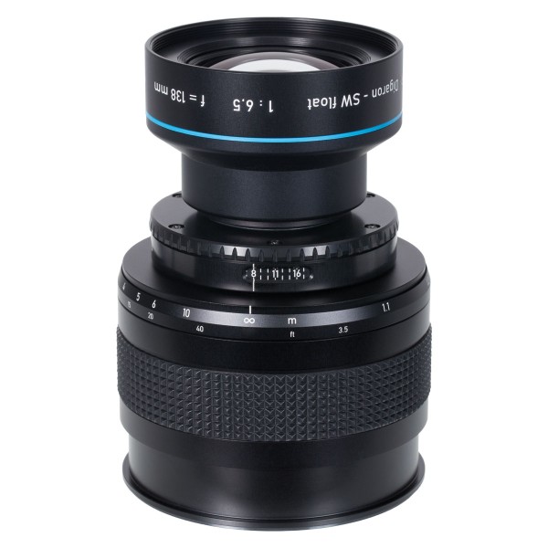 The image circle of the HR Digaron-SW float 138 mm f/6.5 has a constant diameter of 110 mm throughout its entire image scale range. For professional technical cameras, even with the largest sensor formats, this gives ample clearance for parallel shifts for perspective corrections (avoiding or reducing converging vertical lines). This also allows swing and tilt for extended depth of field without excessive stopping down of the aperture according to the Scheimpflug rule.