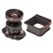 This lenspanel features an integrated tilt and swing mechanism which can be operated with two precise gear-driven knobs upto 5 degrees Tilt up and down and 5 degrees Swing left and right, while both swing and tilt can be set independently, separately but also in combination.