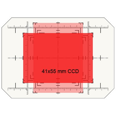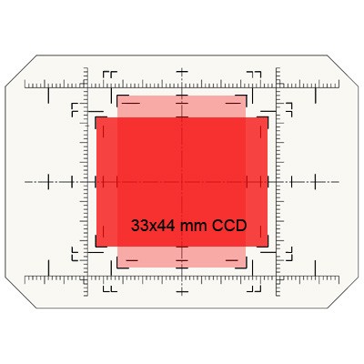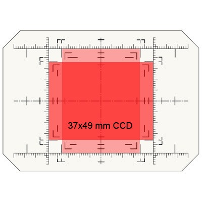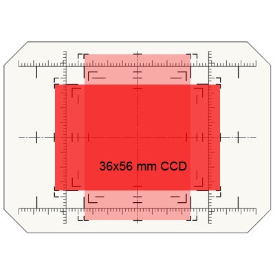 This item is a spare ground glass for the CSL and CMSL series sliding backs, with indication of the CCD-sizes 40x54, 36x56, 36x48 and 33x44 mm, as well as markings for the P65+ /IQ series and Leaf Credo/ Aptus 12 and Aptus 10 sizes.