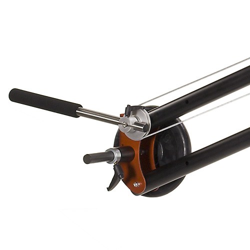 The central unit has four locking knobs for applying friction to the vertical boom movement and to make disassembling easier. The central rotation platform has a low friction bearing system with a rotation brake. It fits to all 75 and 100mm video tripod cups.